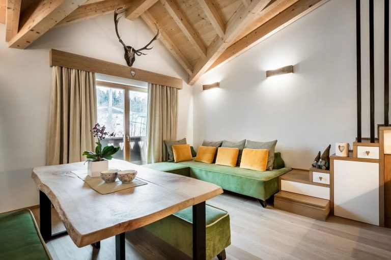 In the heart of Alta Badia, in a ski-in ski-out location, we offer a refined attic apartment with open views of the Dolomites, ideal for those who want to experience the mountains in an authentic and exclusive way.