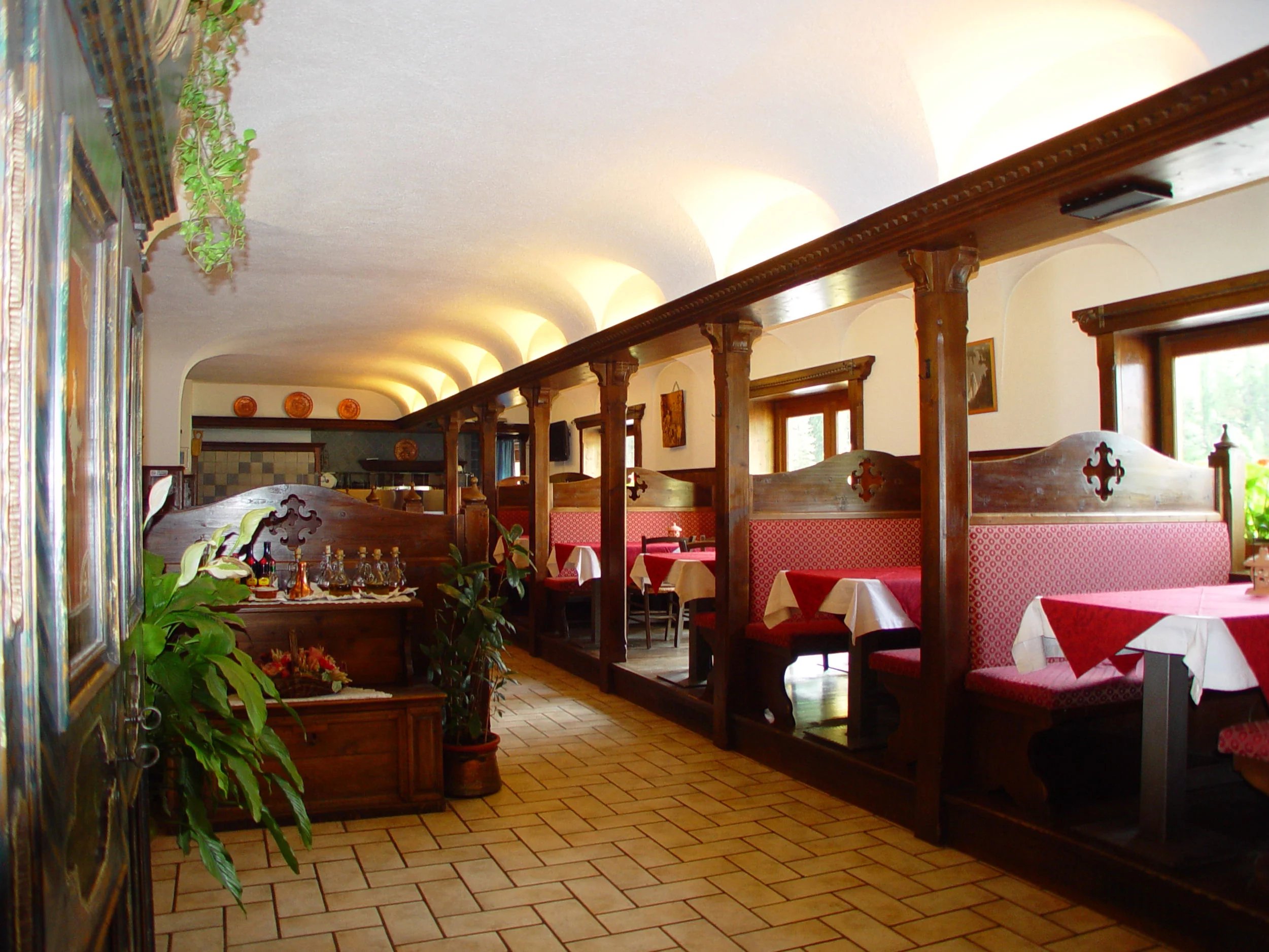 The property unfolds across a multi-level main building and an independent secondary structure, combining a hospitality operation with hotel use, a restaurant and bar at ground level, and residential units on the upper floors. The layout reflects a well-established alpine structure, with a natural integration of guest accommodation, dining spaces and service areas.